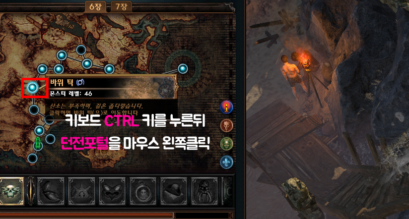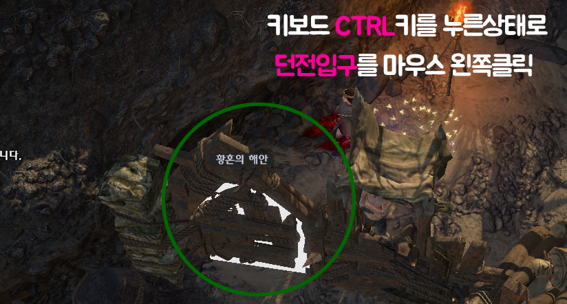 마을로 돌아와서 황혼의 해안 입구앞으로 이동합니다. 그런다음 키보드 컨트롤키를 누른상태로 마우스를 던전 입구에 가져다된뒤 왼쪽클릭을 하면 됩니다.