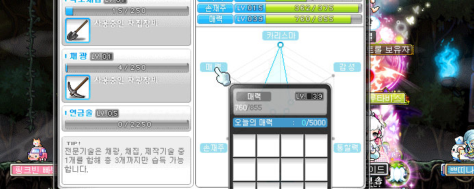 그래서 오늘 소개드리는 메이플스토리 매력 노가다가 필요합니다. 참고로 매력 30레벨을 달성하기위해서는 매력수치를 11500점 정도까지 올려줘야하는데요. 하루에 올릴 수 있는 매력점수는 5000점이 최대치이기때문에 빡세게 했을때 대략 3일 정도 매력 올리기 노가다를 해주셔야합니다.